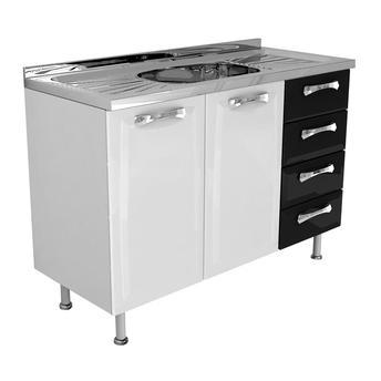 Gabinete para Pia 2 Portas e 4 Gavetas em Aço com Pintura Eletrostática, Pés Design Moderno, Sapata Regulável, Pia Inox, Premium, Preto - Itatiaia