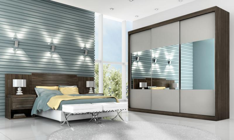 > 3 PORTAS DE CORRER COM ESPELHO – Os espelhos conferem beleza e maior amplitude ao quarto, aliados as portas de correr que se ajustam ao menor espaço para abertura.