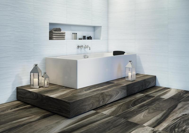 A Série Silk traz três revestimentos componíveis entre si. A versão lisa pode ser coordenada com duas opções de insertos com relevos que remetem ao efeito sinuoso da argamassa espatulada. Todas as versões apresentam uma textura marmorizada suave sobre o relevo que confere uma identidade clássica ao revestimento.